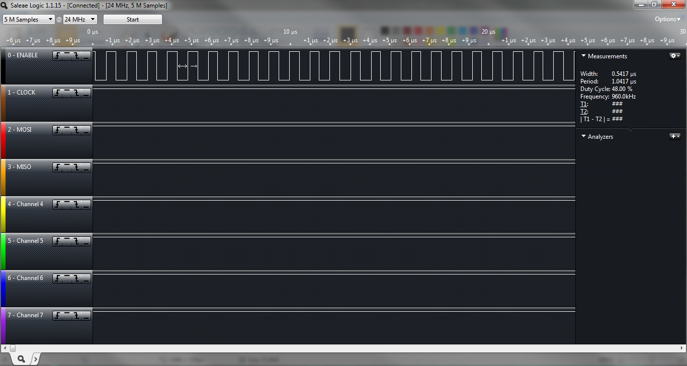 After a couple of hickups, its a complete success! A standard GPIO toggle program was run and it was producing a frequency of 960kHz, showing that atleast something was working initially! It surprisingly easy to use some jumper wires from the SWD output of the STM32 Discovery to the maple.