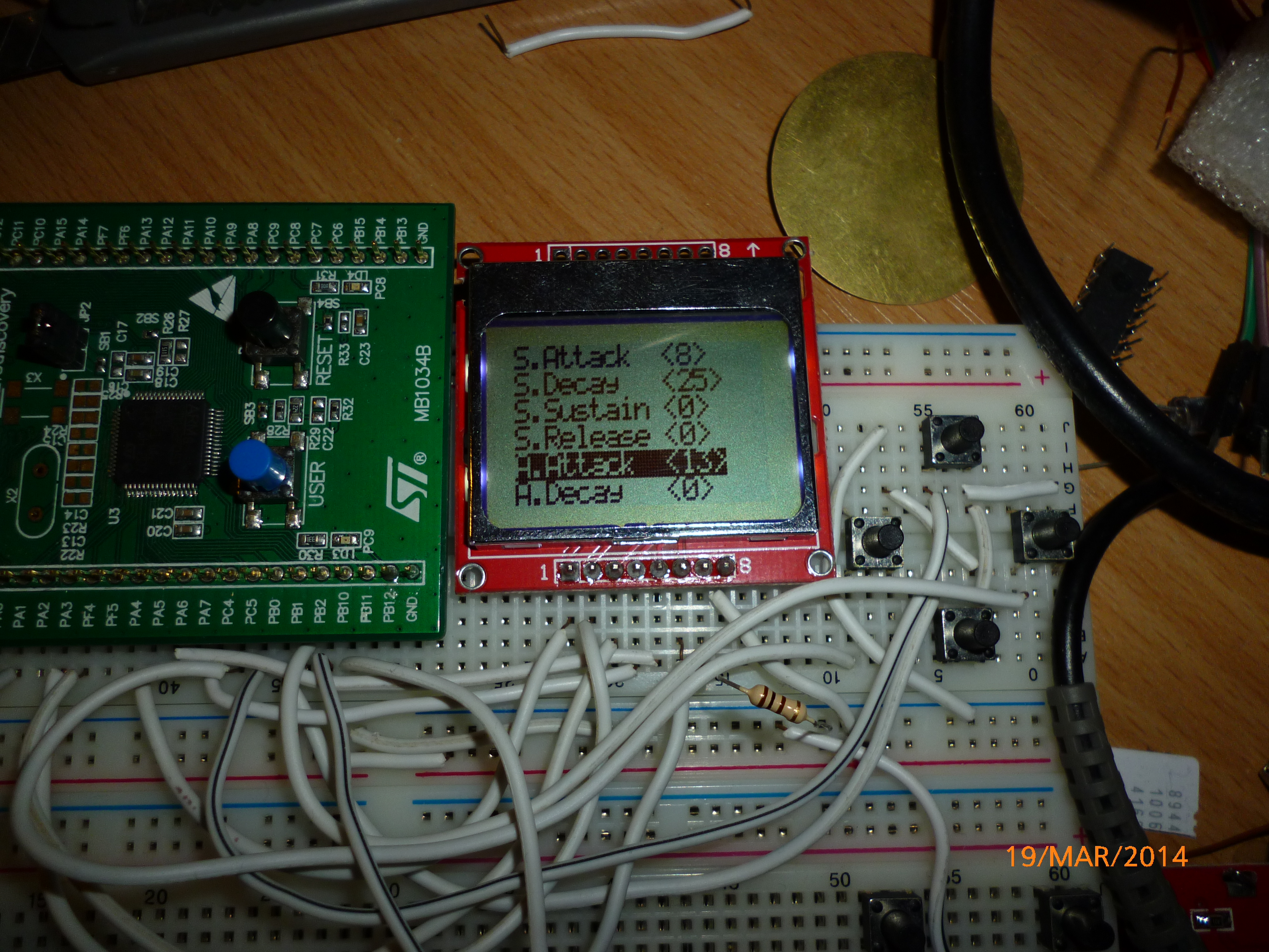 Having had a drastic rethink over the whole Phobass design, I’ve decided that I’m going to scrap the idea of making the patch editing PC based and have a dedicated patch editor onboard. Using my trusty PCD8544 Nokia LCD and the library I wrote, I’ve been writing a menu system. So far, I’ve got the envelopes and waveforms sorted!