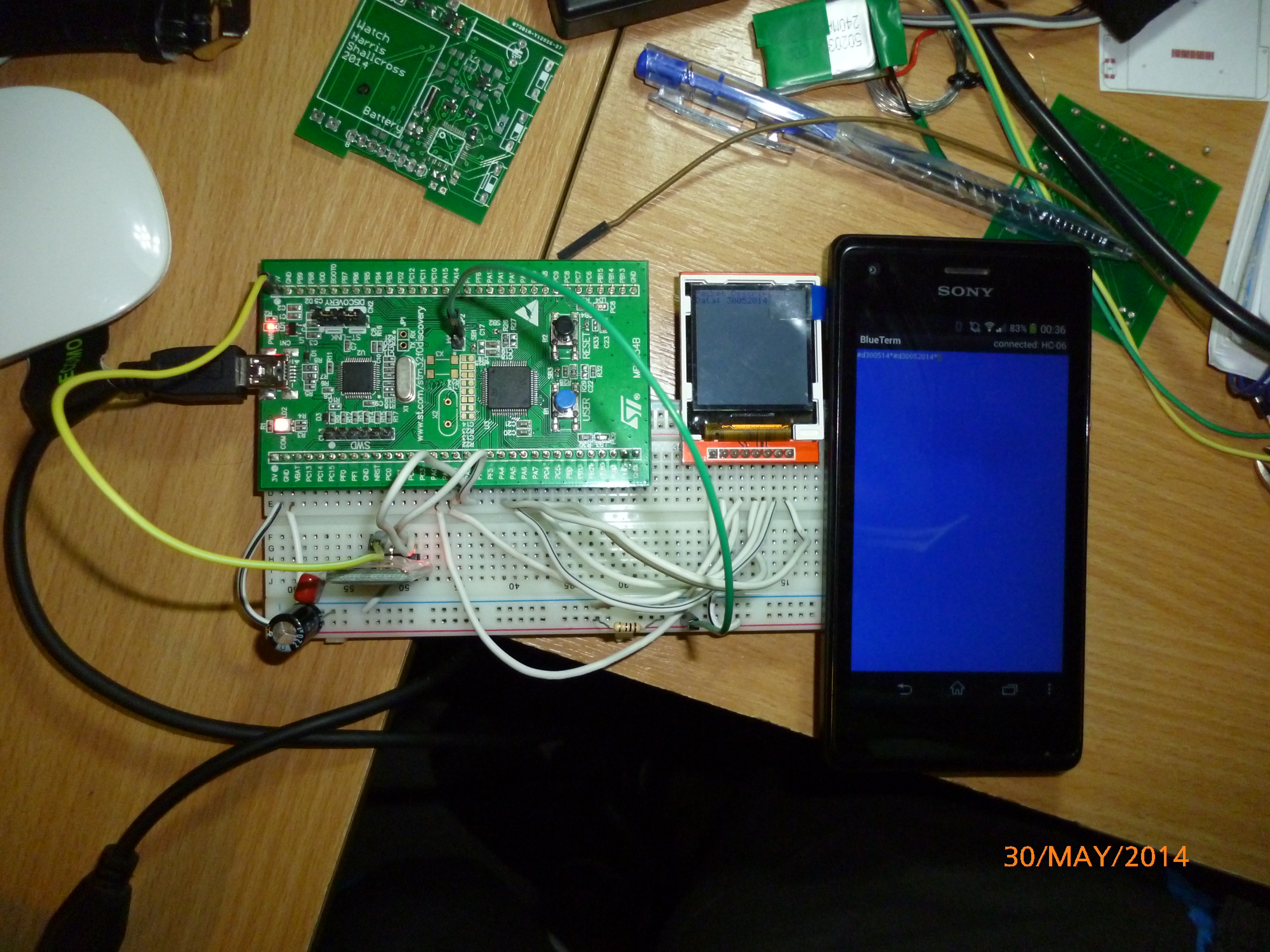 Well, today has certainly been a productive day! I recieved my new HC-06 bluetooth module (I stupidly ripped up the RX trace on the other one trying to unsolder it from the backboard) and have managed to implement the “harris protocol” system! I’ve gone for a really simple protocol as the module itself only sends and recieves USART data as of now, until I learn all the AT commands of course! So the protocol is really easy, you send a packet start character (I’ve chosen ‘#’), send your data before the timeout and end the transaction with the packet terminator character, for which I’ve chosen ‘*’.