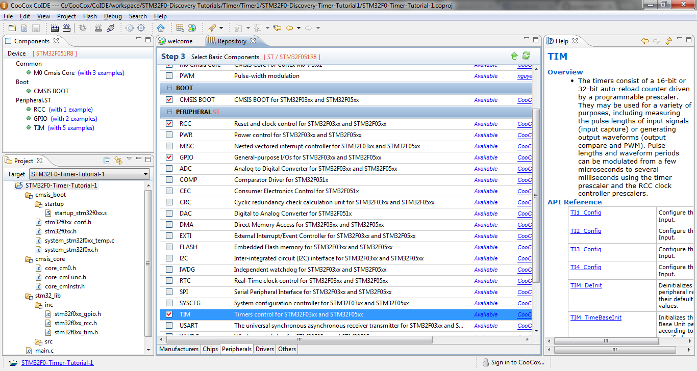 So onwards with the tutorial! If any of you have been reading any of my other tutorials, you will see that in my GPIO example, I explain how to set up a new project within CooCox (my IDE of choice and strongly recommended!). As I’ve explained it in the past, to save myself from explaining in every tutorial, that tutorial can be found at: GPIO Tutorial