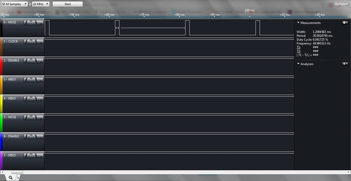 As you can see, the output frequency is 50Hz, along with the pulse width being 2ms.