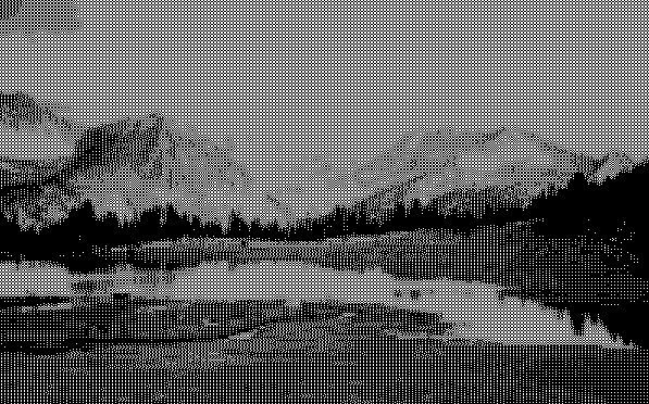 As you can see above, its not brilliant and the first doesn’t have the cool “random” pixel assignment of the other methods though I have implemented a poor pseudo-random version which rotates the matrix after it has been used to give a more “random” feel though many of my defined density matrixes are symmetrical! Regardless, it does work relatively well and you can certainly make out the landscape picture from the black and white picture below. As much as the sky doesn’t translate too well…