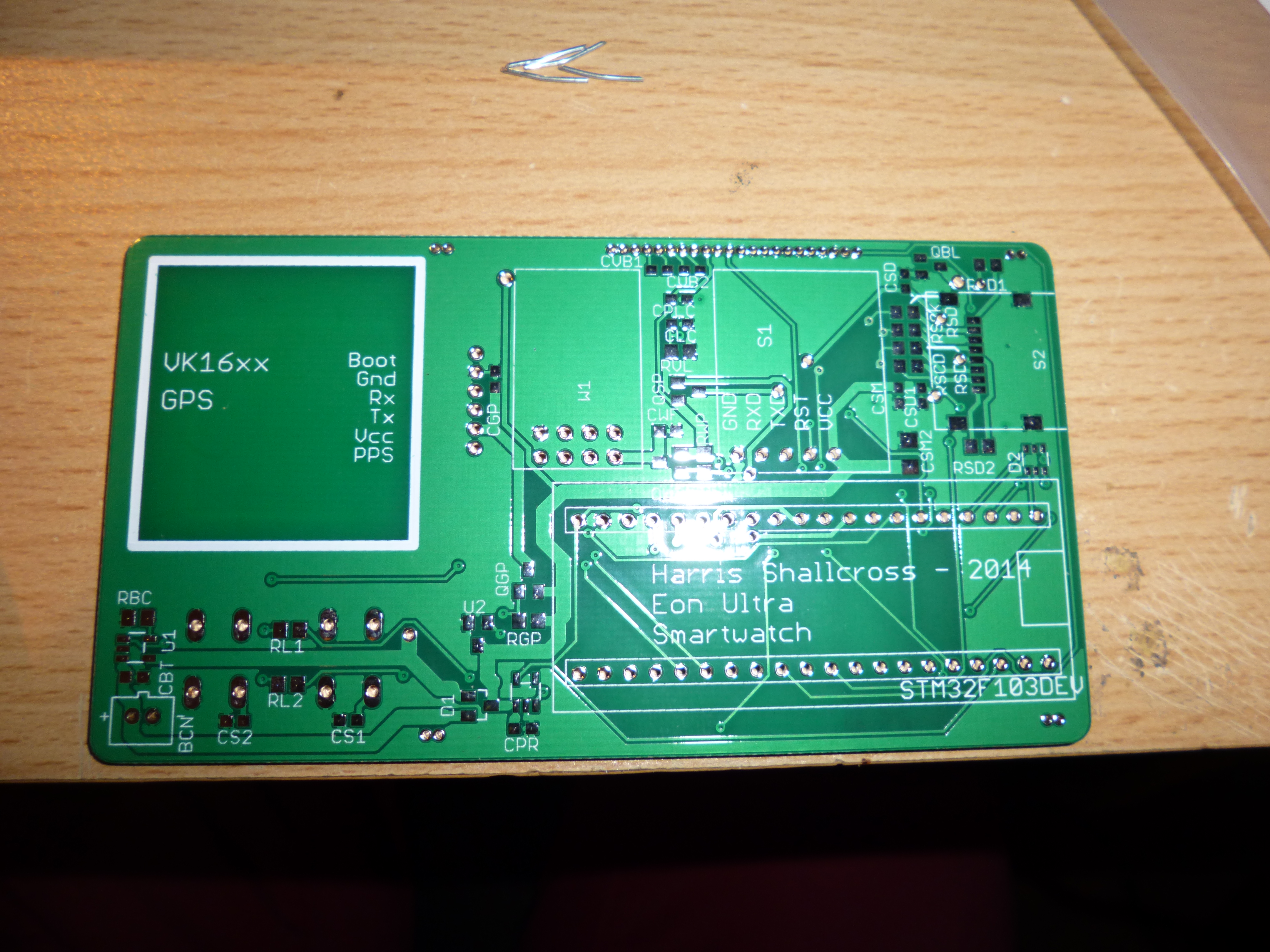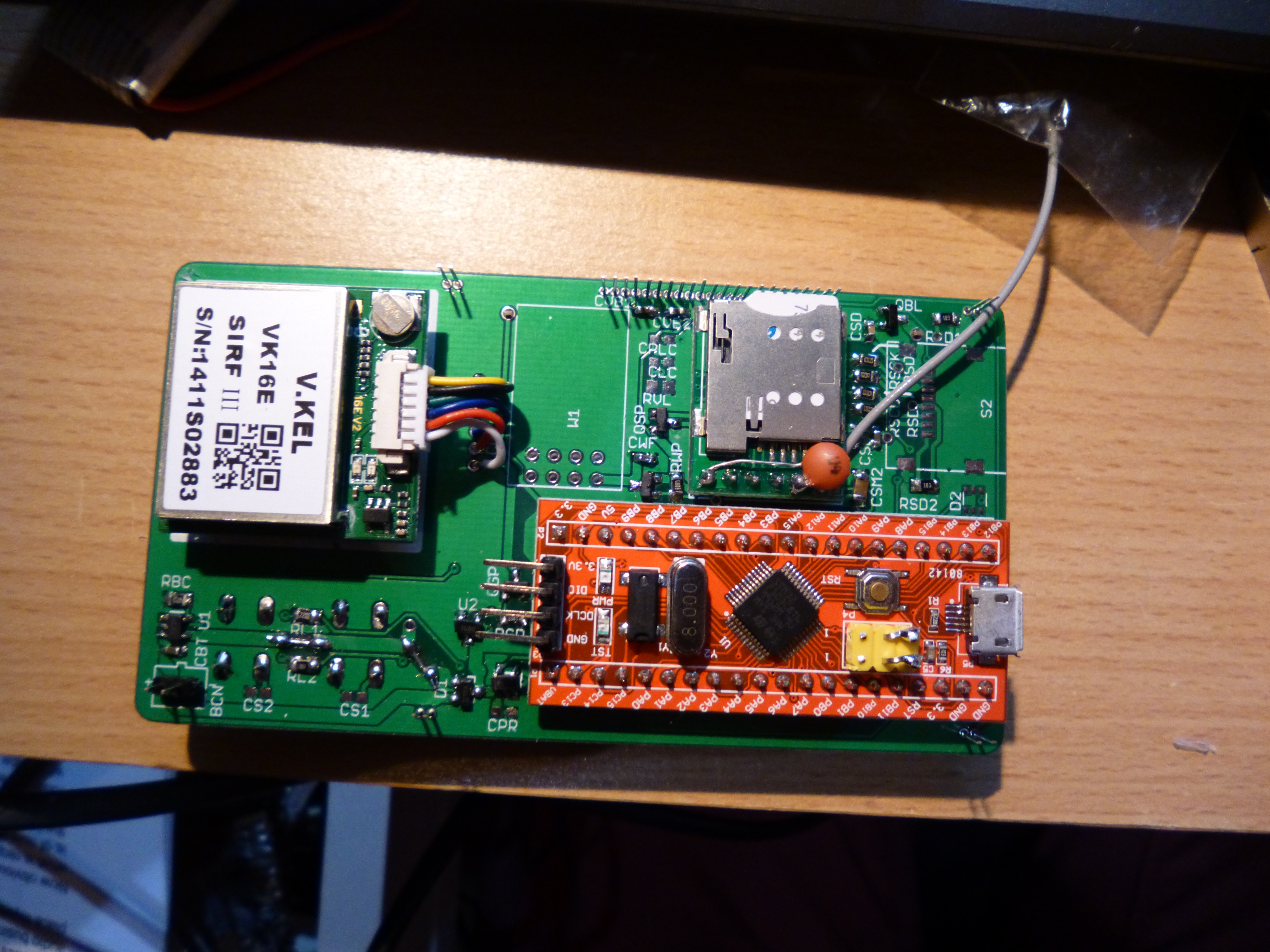 As you can see from the PCB’s, there isn’t actually much soldering as most of the parts are modular – WiFi, GPS, GSM/GPRS and the actual microcontroller. The reason that I’ve actually done it like this is price! Its actually cheaper to buy a premade microcontroller board, GPS module etc, than buying the individual parts and assembling them yourself, thats economies of scale for you. For reference, the microcontroller used is a STM32F103C8 which to buy the micro alone costs £4.21 (RS Components – 18-12-14), compared to me purchasing the whole board which includes an 8MHz and 32.768kHz crystal, onboard regulator, test LED’s, Micro USB socket, reset button and programming headers for £3.03 (eBay – 18-12-14). It just isn’t economically viable for me to buy each individual part when I can get the premade thing so cheap! The exact same also applies to the SIM module (Simcom SIM800L) and GPS module. Not forgetting, if I did purchase the individual components for GPS and the SIM module, I’d have to delve into PCB trace design for antennas – which I imagine is absolutely solid.