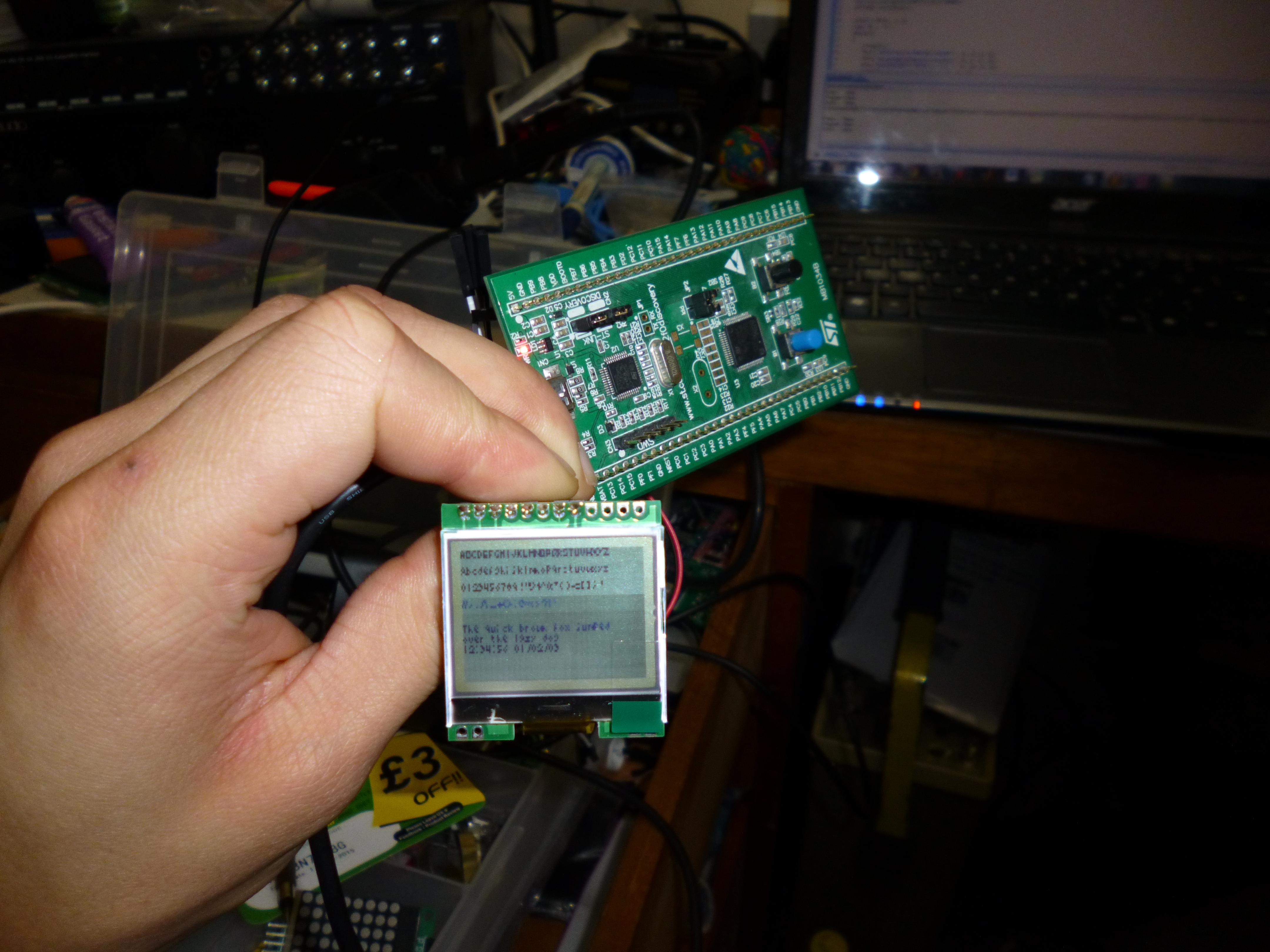 Free wire setup! Turns out that this LCD is actually photosensitive and using my camera flash causes it to blank… oh…