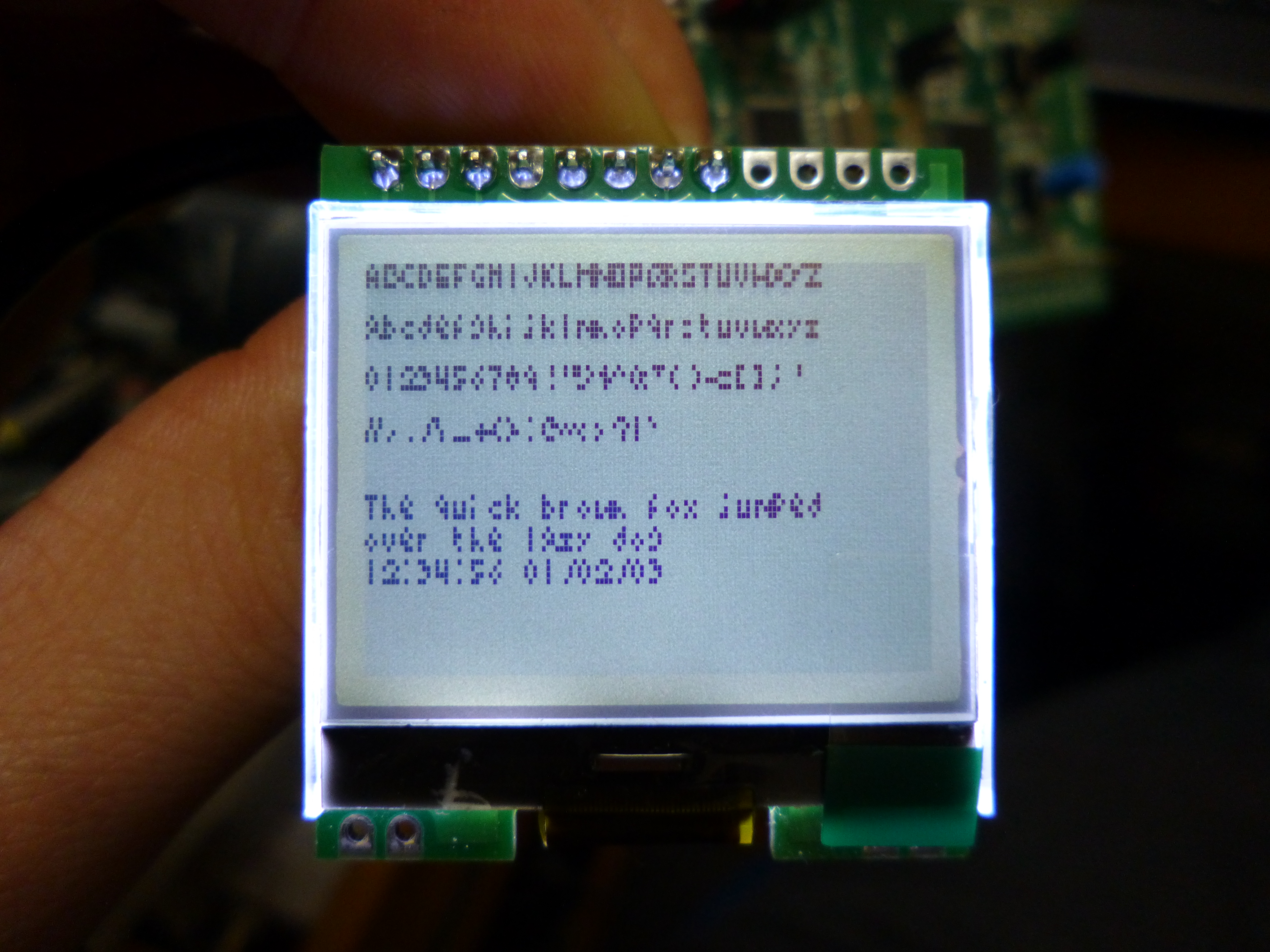 As you can see, its not the easiest of LCDs to read with this font size but it was a fun test! Some of the characters are a little dodgy to read too as making characters fit in a 4×4 font set ain’t easy! I’m sure it’d be much easier to read if everything was just written in upper case but who would want to do that anyway.