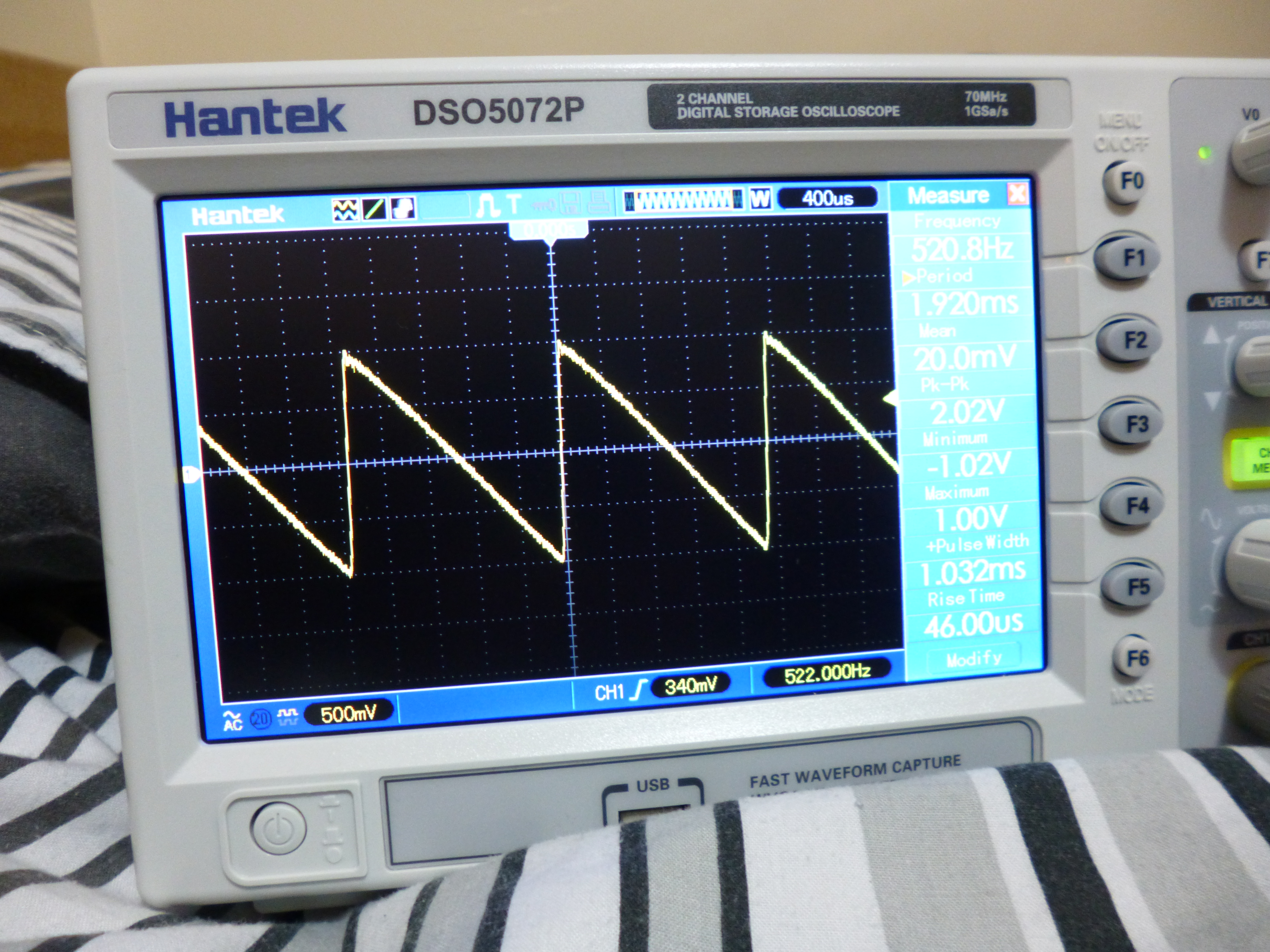 The waveform present at the analog input on my STM32F0 –Â 520.8Hz!