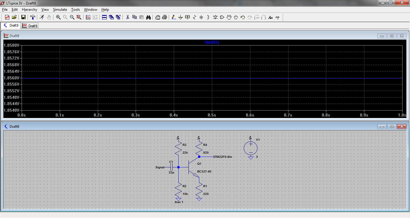 Nothing brings me back to first year like designing a Transistor amplifier… apart from the fact that everything goes squiffy once you quantize all resistor values to E12 values! As you can see, the Q point isn’t exactly 1.5V but considering the data is high pass filtered in software, its not a massive deal and it just means there is slightly less headroom on the inputs by ~((1.85-1.5)/2)V = 0.175V, not forgetting the fact that it does its job!