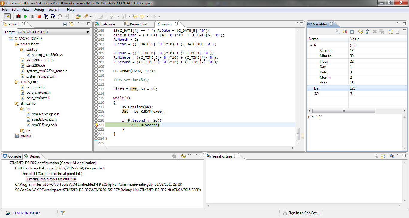 Reading the clock in debug mode under CooCox.
