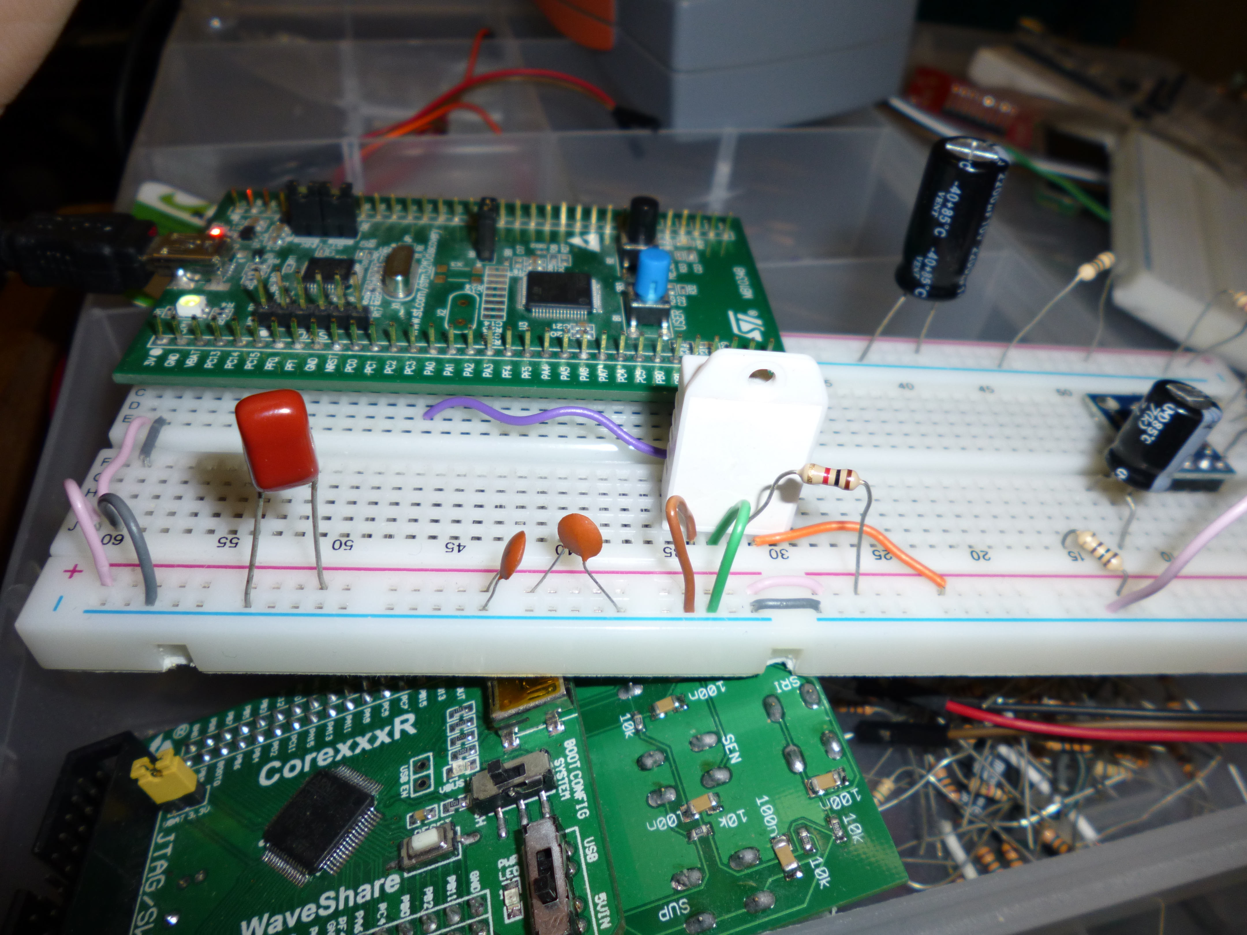 The full setup. It doesn’t actually need that many supply capacitors, I just keep them on my supply instead of going through the effort of putting them back in their correct box!