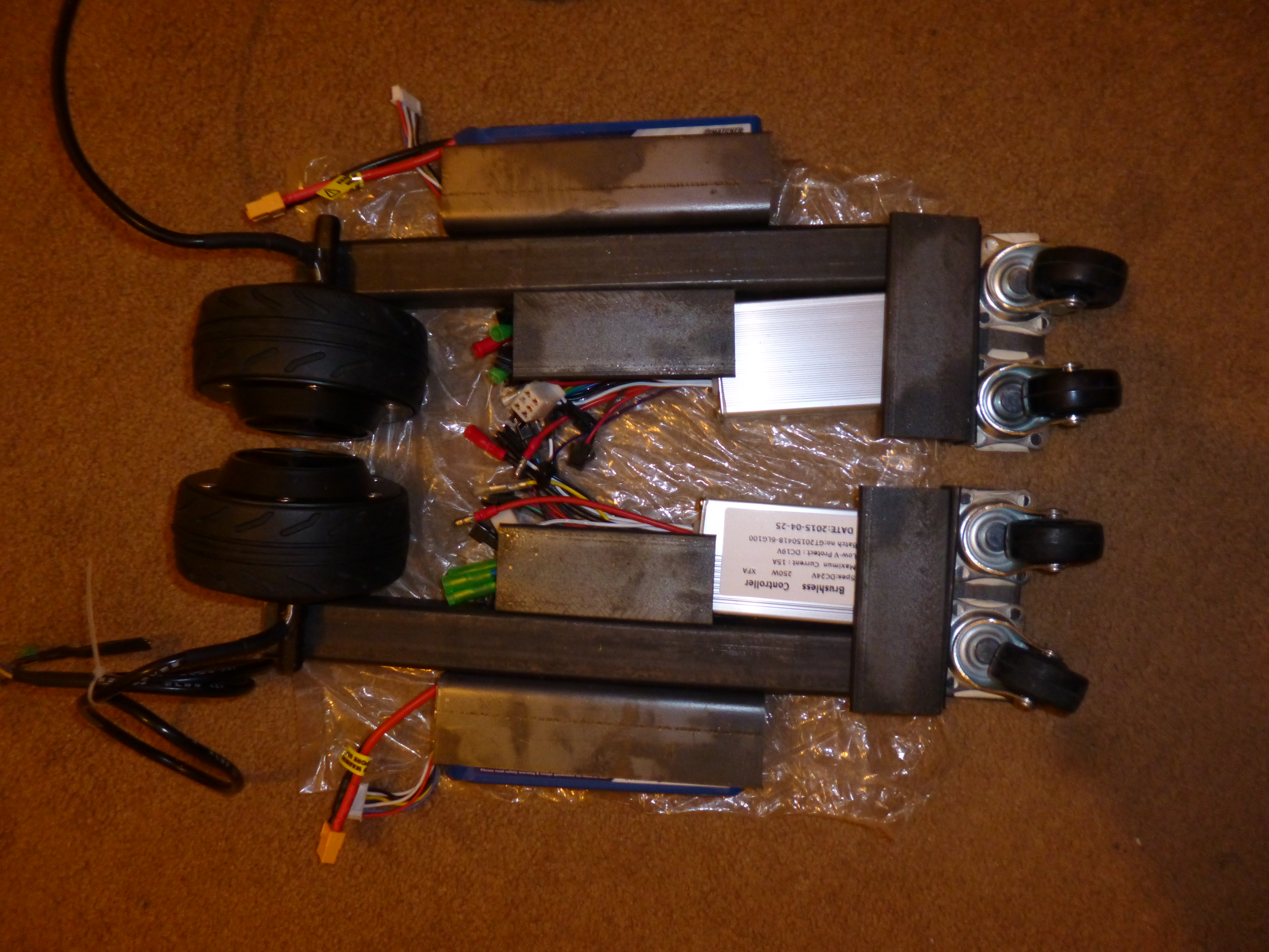 This is however and area that I need to look into more so hopefully my generic internet research will point me in the right direction… On the plus side, any Li-PO explosions will be pointed forward, backwards and outwards of my legs as the batteries will be contained in nice thick steel extruded U channel.