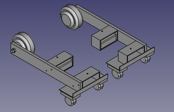 Therefore, I’ve decided to make the move to Aluminium for the next set, along with dual omniwheels at the front to rectify the issues I had with castors on the last set. I’ve also shifted the front two casters towards the outer edge more to sort out the centre of gravity issues on the last pair. Finally, I’m intending to either drill the DD holes straight into the main bar of frame (as originally intended), OR test out my new idea of attaching – two threaded holes, perpendicular to the shaft, used to hold the shaft in a suitably sized and drilled hole.