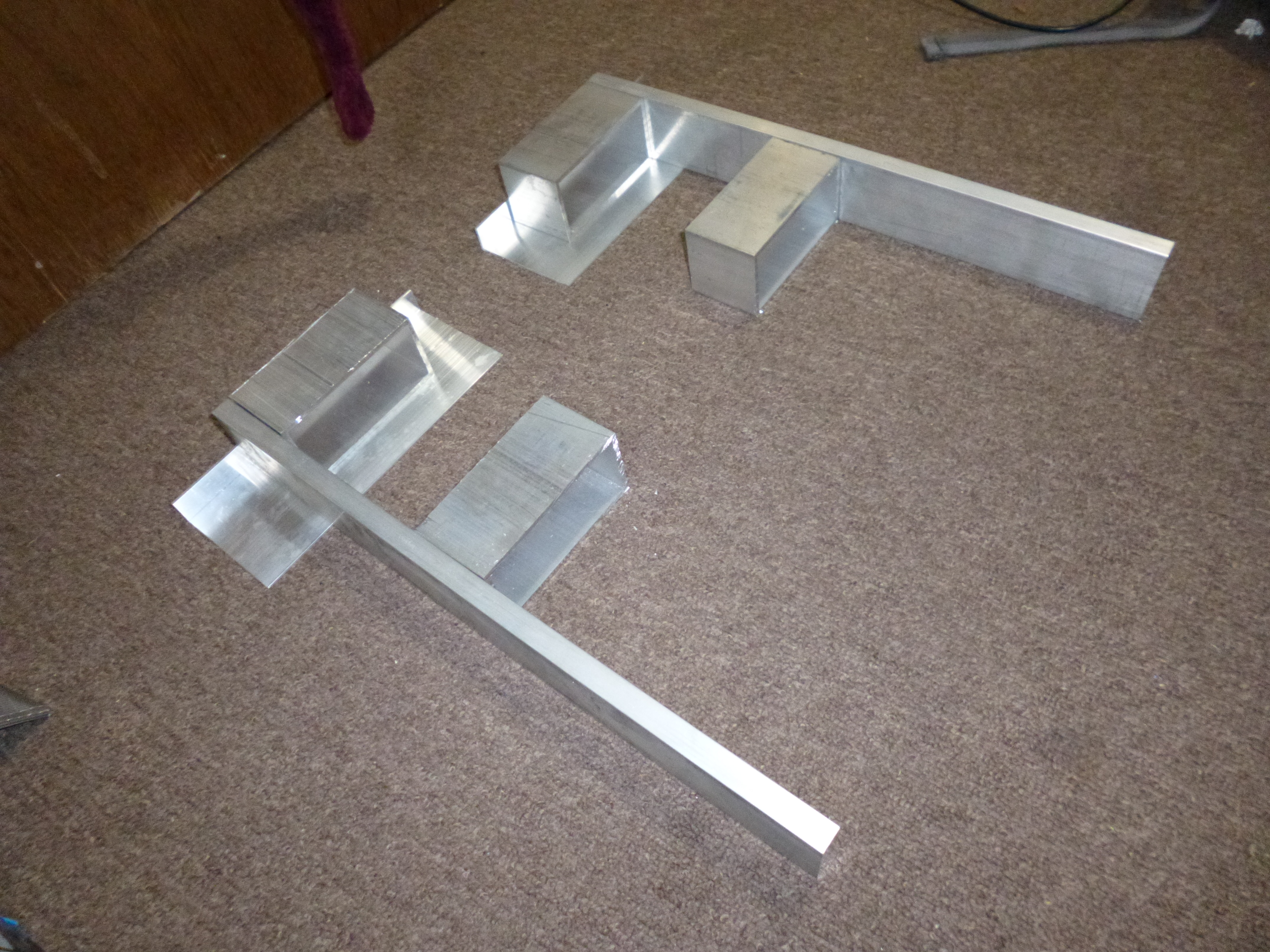 As can be seen, aluminium flatbar will be used as the main body, along with aluminium box for the middle and front sections. Finally, a piece of aluminium angle to interface the omniwheels to the front box.